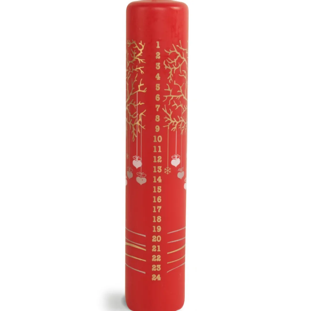 This beautifully designed advent pillar candle is a great gift as well as being the perfect centre piece to celebrate the tradition of Christmas in your home. As a novel countdown to Christmas, the candle is decorated with numbers 1 to 24. With a slow burn and a clear flame brightening up the darkness of winter, each number drums up the anticipation and excitement leading up to the big day. 56 hour burn time (approximately 60 minutes per day.) Red advent candle with gold tree and bauble design. 25cm (9¾ inch) tall, 5cm (2 inch) diameter. Made in Denmark.