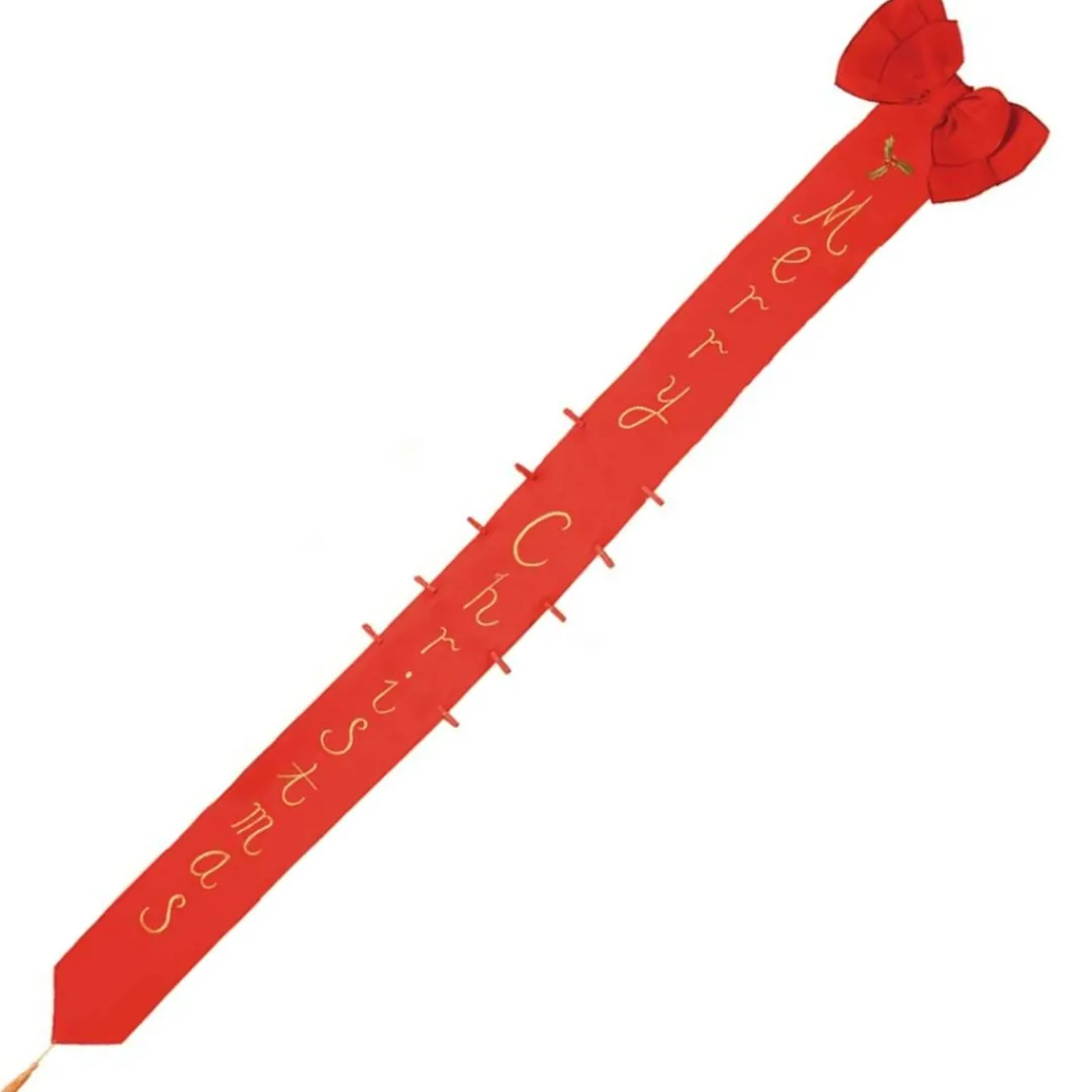 Enhance the festive spirit in your home with this stunning Card Bow, designed to beautifully display your Christmas cards in style. Measuring an impressive 180cm in length, this red ‘velvet’ bow features 16 pegs, providing plenty of space to showcase your festive greetings. The bow itself is approximately 30cm (12 inches) wide, making it the perfect statement piece for any wall or door. Say goodbye to cluttered surfaces and scattered cards – with this convenient and elegant solution, your Christmas card collection will be neatly and prominently displayed for all to enjoy.
