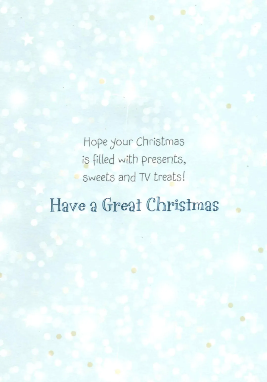 Inside Message : Hope your Christmas is filled with presents, sweets and TV treats!