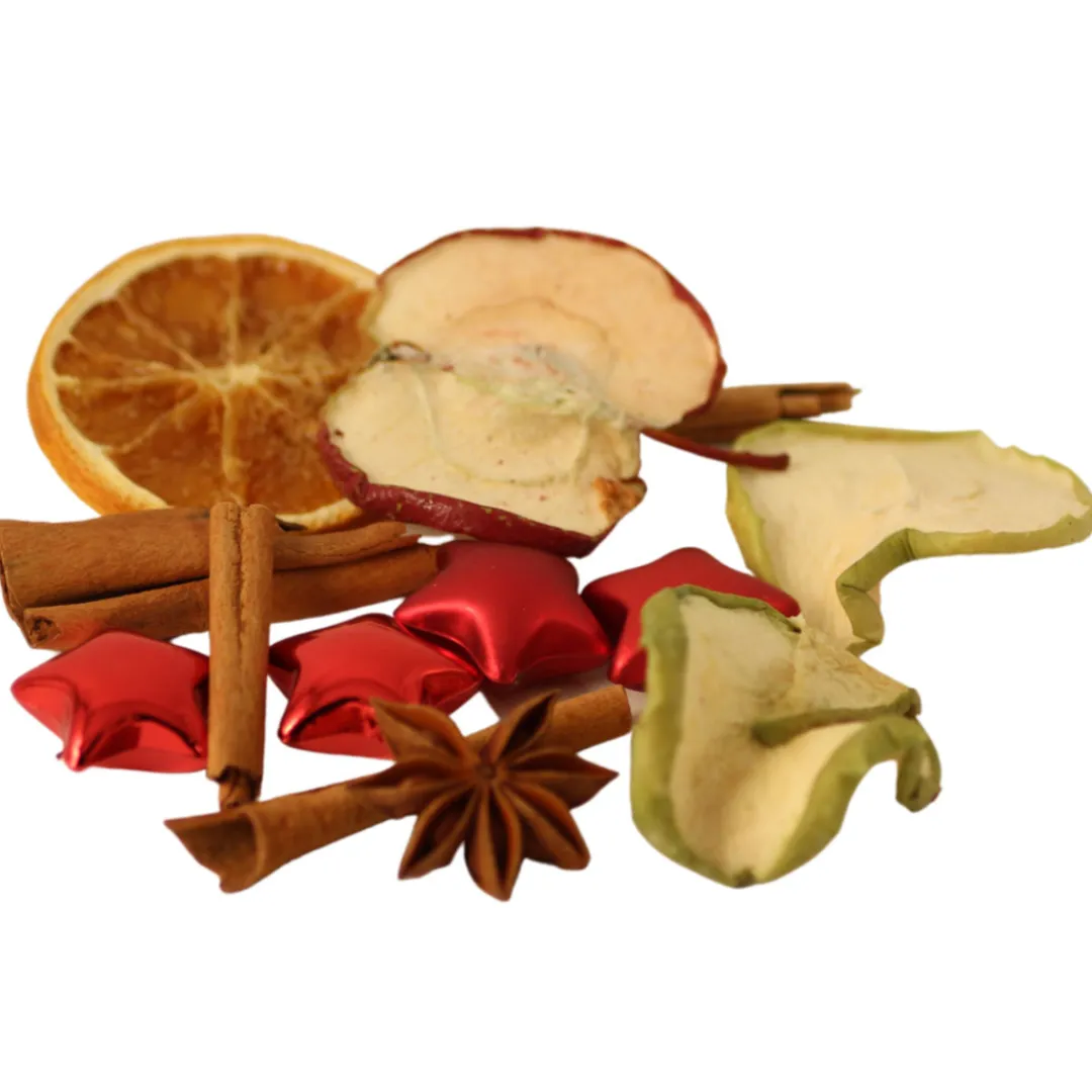 Decorate your Christmas craft projects with this versatile Craft Accessory Pack. This convenient pack includes a variety of seasonal accessories such as dried, sliced apple & orange, fragrant cinnamon sticks, aromatic star anise, and bright red stars on wire stems. Perfect for decorating wreaths, garlands, table centers, Christmas displays, and floral arrangements, this 30g pack offers endless creative possibilities. Let your imagination run wild and add a touch of elegance and charm to your creations with these beautiful and festive adornments.