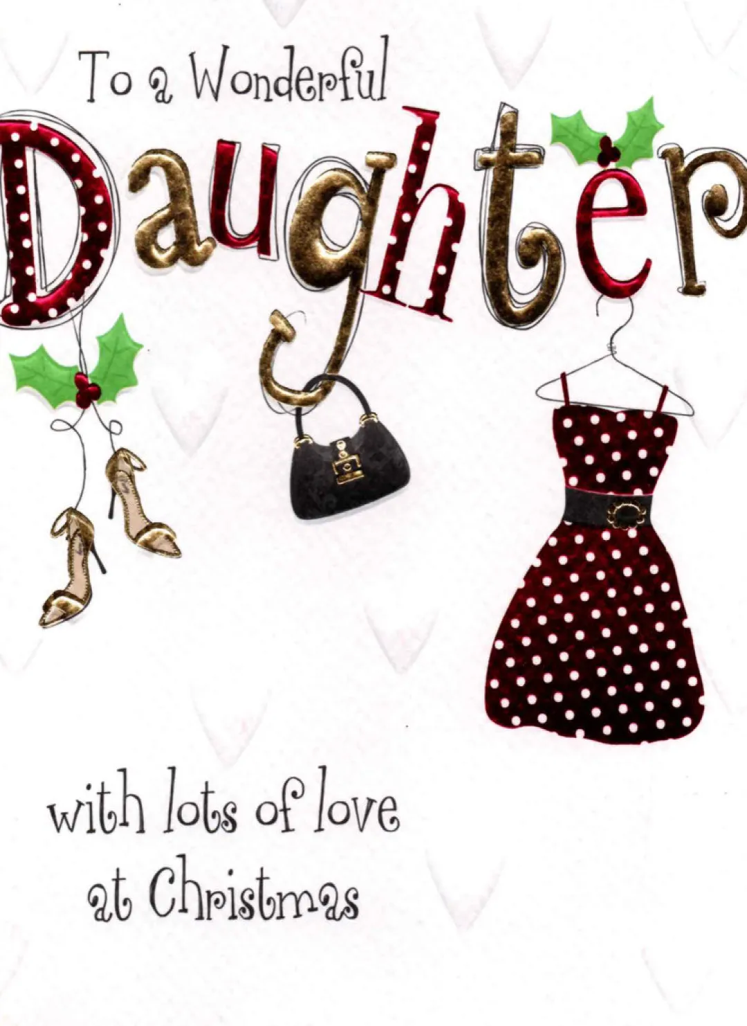 A Christmas card for a Daughter with foil printing. 17.5cm x 12.5cm (7in. x 5in.). Supplied with envelope.