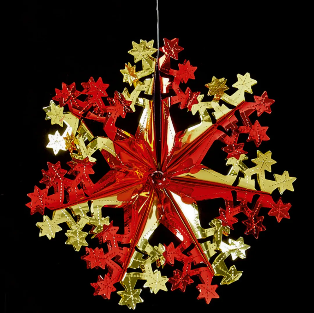Add a touch of tradition to your Christmas celebration with this hanging decoration. The shining piece features a classic red and gold metallic foil design that is perfect for creating a festive atmosphere. Measuring approximately 40cm (15¾in.) tall and equipped with a vinyl hanging cord, this decoration is easy to hang and will make a statement at your festive gathering. The decoration is supplied flat for convenience, with a simple pull-out assembly process that allows you to quickly set it up and enjoy its fun.