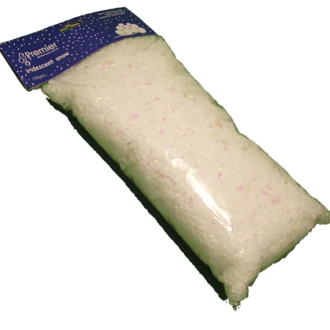 Scatter these artificial snowflakes around your tree and on it’s branches for a quick way to add romantic flocking. These lightweight iridescent flakes can be applied permanently to figurines and festive displays when sprinkled over spray adhesive or clear craft glue. 150g bag. Perfect for Christmas displays.