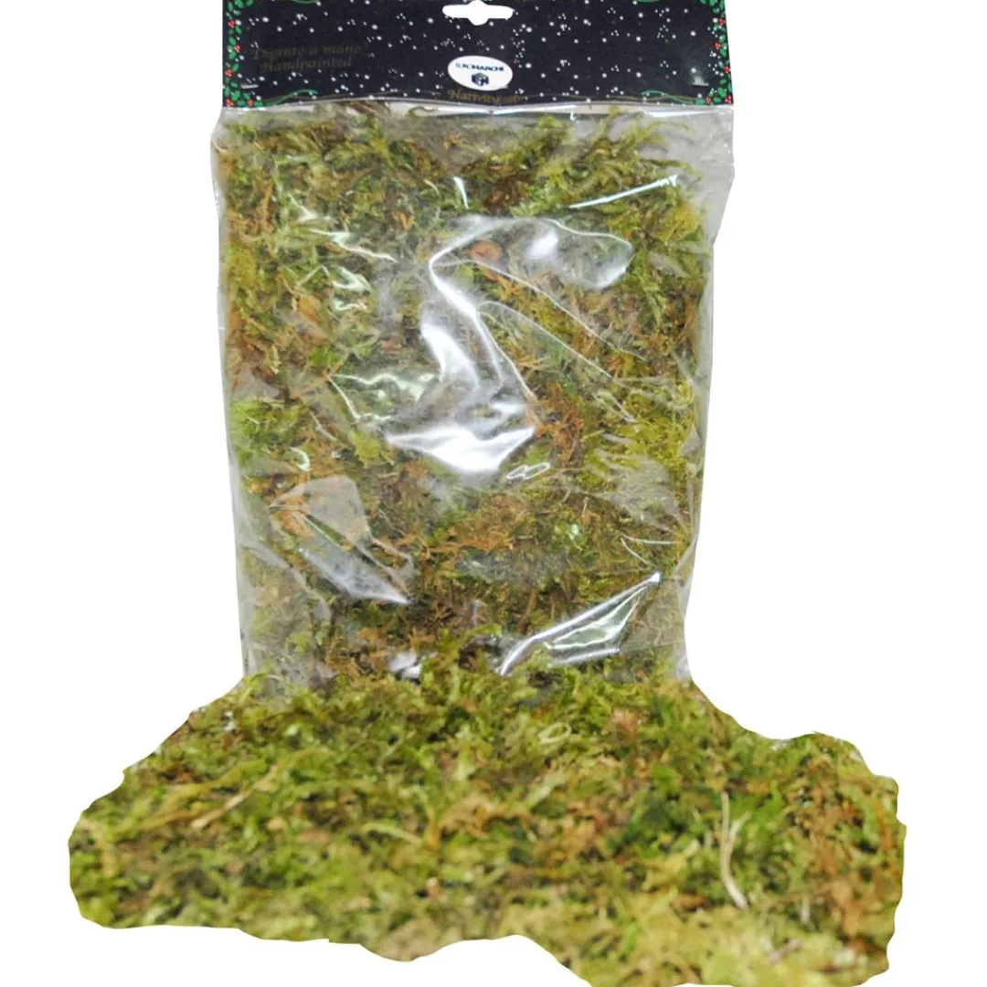 Bag of dried natural moss for dressing your nativity scene. 80g bag, approximately 20cm x 20cm x 6cm.