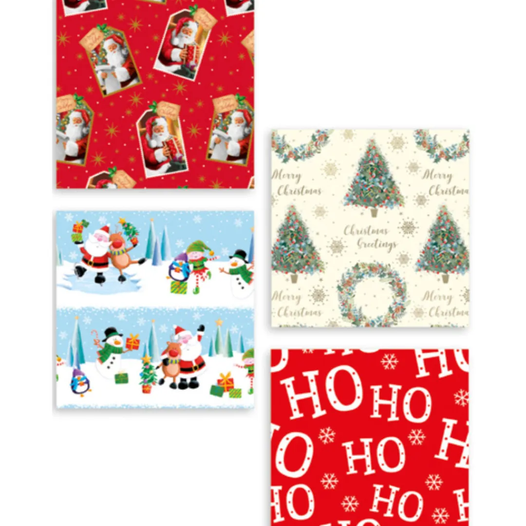 Get ready for the festive season with this Pack of Flat Christmas Wrap! This convenient pack includes 8 sheets of Christmas gift wrap, each with an approximate size of 50cm x 50cm (19½ x 19½ inches). With 4 unique designs in each pack, you’ll have plenty of options to choose from when wrapping presents for your friends and family. This economical pack is the perfect solution to all your Christmas gift wrapping needs. The wrapping paper is conveniently folded flat for easy storage, making it a practical choice for any busy season.