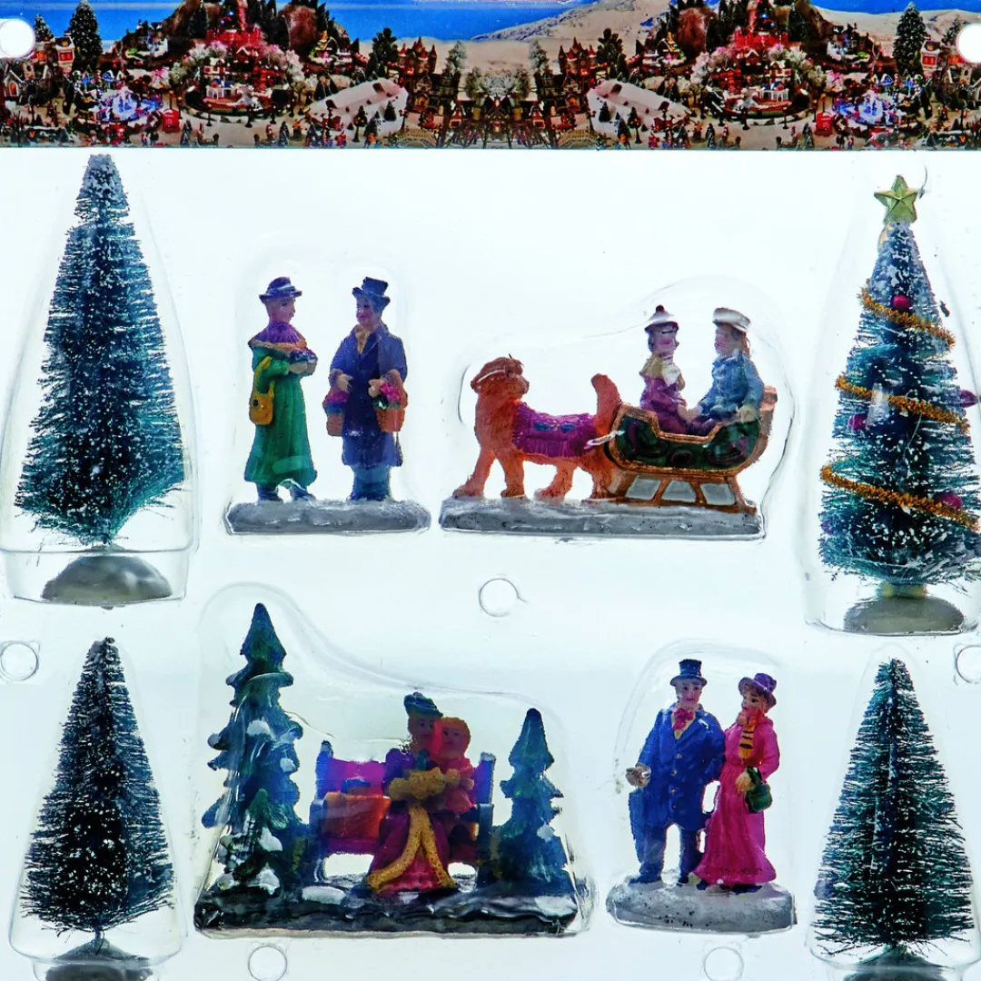8 piece village accessory set for inclusion in a miniature Christmas scene. 6cm tall resin figures.