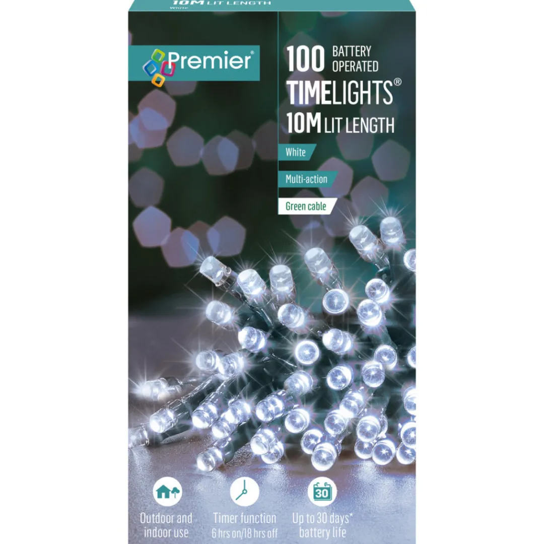 The Christmas Shop Battery Operated 100 White LED Light Set| Battery Operated Lights