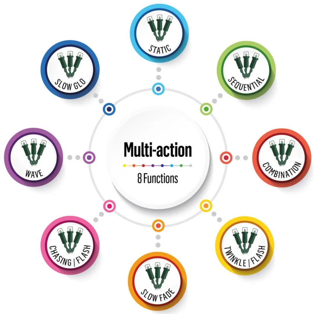 Enhance the ambiance of your home or garden with our Battery Operated 100 White LED Light Set. This cool white light set features 100 LED lights spaced 10cm apart on a dark green cable, perfect for adding a touch of festive cheer. The convenient timer function allows for 6 hours of illumination followed by 18 hours of rest, ensuring energy efficiency. With 8 different lighting functions including combination, steady on, and various chasing modes, you can create a customised display to suit any occasion. Suitable for both indoor and outdoor use, this versatile light set is sure to brighten up your space. Simply insert 3 AA batteries (not included) and enjoy the festive glow of these battery-operated Christmas lights.