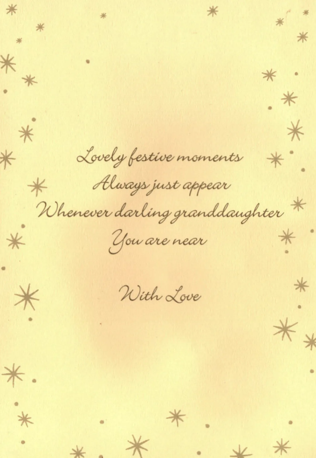 Inner message: Lovely festive moments Always just appear Whenever darling granddaughter You are near. With love
