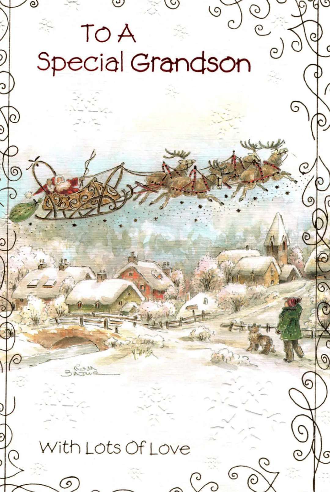 A Christmas card for a Grandson. Approximately 23cm x 15cm (9in. x 6in.). Supplied with envelope.