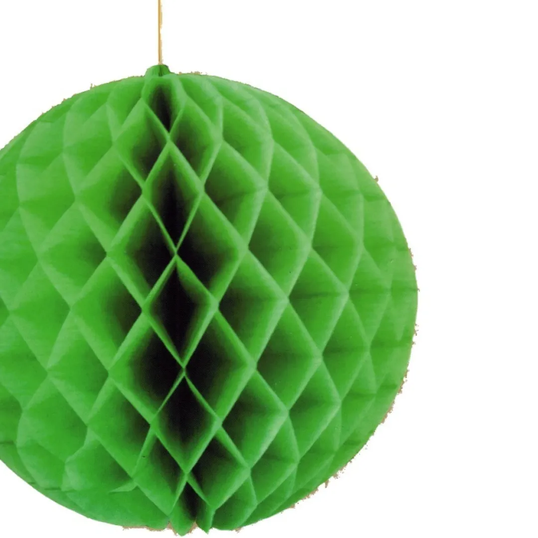 Honeycomb tissue paper hanging decoration. 30cm diameter. Supplied flat-packed. Simple pullout assembly.
