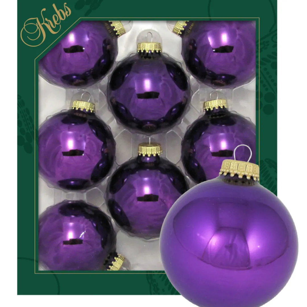Enhance the beauty of your Christmas tree with these stunning Shiny Purple Baubles. This set includes 8 traditional purple glass baubles, each adorned with metal caps for a touch of sophistication. Measuring at 67mm (2 5/8 inches) in diameter, these exquisite Christmas decorations are sure to captivate your guests with their eye-catching reflective surface, creating an elegant sparkle throughout your home. For added convenience, consider using our metal tree hooks to easily hang these baubles. Each set is carefully packaged in a plastic tray within a sturdy cardboard box, ensuring they arrive safely to your doorstep.